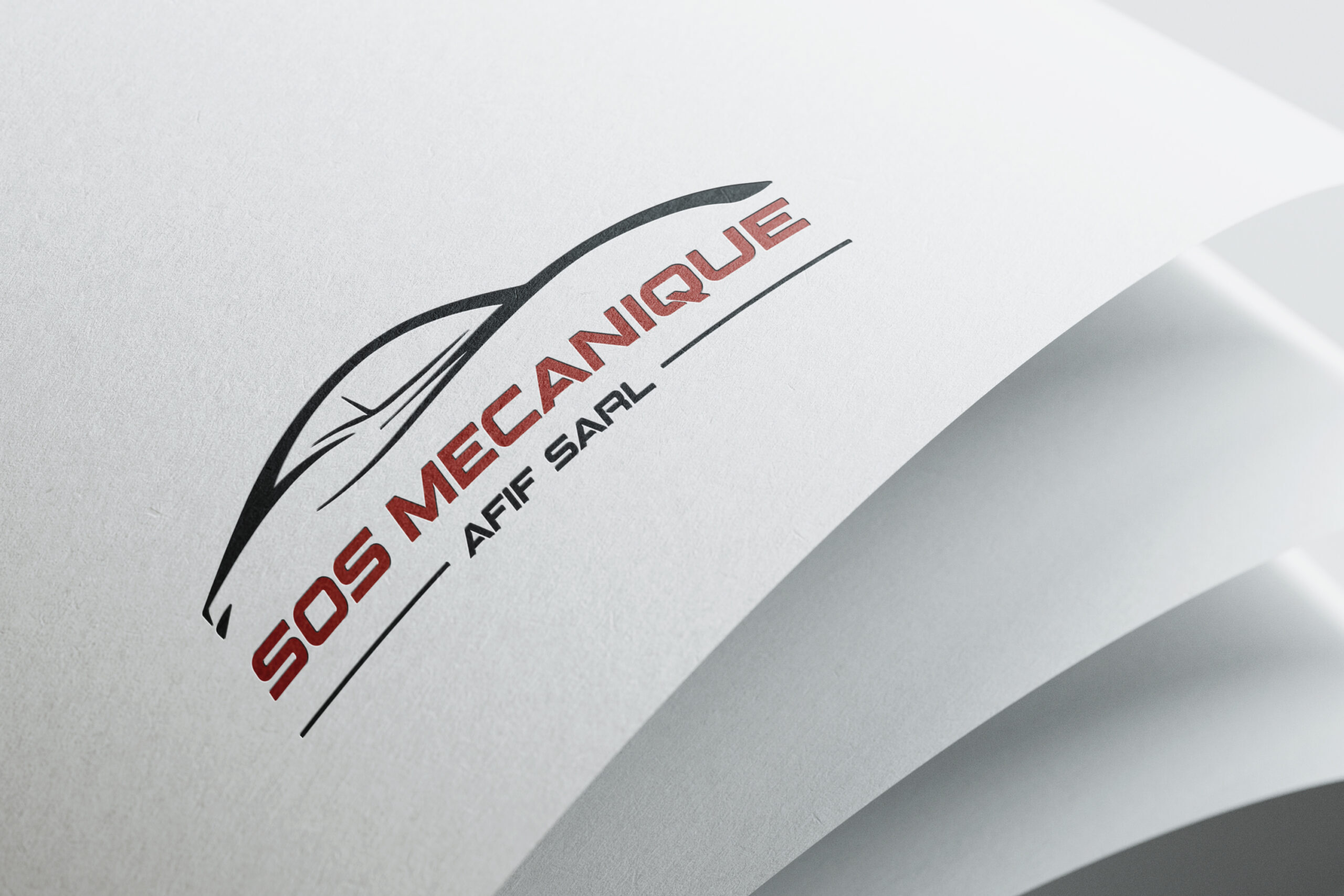 Création du logo et de la Business Card pour la marque SOS Mécanique Afif Sàrl, atelier de reparation automobile.